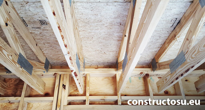 Însemnând că dacă nu proiectăm corect pentru o anumită încărcare, atunci planșeul se va stâmba, se va curba în timp sau se va rupe sub încărcarea la care este solicitat. Nici în cazul planșeelor de oțel nu este diferit, dar este ceva mai sigur la partea cu ruperea. Oțelul te va avertiza în privința eșecului cu niște zgomote îngrijorătoare. În imaginea de mai sus o să puteți vedea cum funcționează un planșeu de lemn. Avem niște grinzi sprijinite pe ceva stâlpi sau fundații. Apoi peste aceste grinzi se montează niște scânduri capabile să transmită încărcările în grinzi.